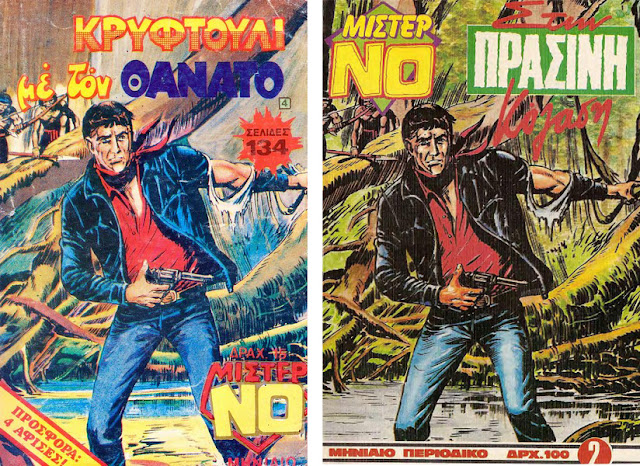 Mevzuyu uzatıyor gibi görünebilirim ama, bunun ilk sayı olması sebebiyle belki de Mister No meraklıları sever diyerek, ilk sayının farklı ülke basımlarını da aşağıya bırakıyorum. İlk kapak olan İspanyol baskısı için, kapak resmi, ismi belirtilmeyen bir sanatçıya yeniden yaptırılmış. Fakat diğer kapaklar, orijinalin eğip bükülmesi ile hazırlanmış.