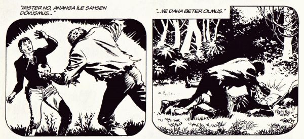 Öykü: Efsanevi 1 numara. 1952 yılı. Mister No’nun bu ilk öyküsünde onu Manaus’ta görürüz. İkinci Dünya Savaşı gazisi olan ve geçimini uçağıyla turistlere rehberlik yaparak sağlayan Jerry Drake, lakaplı Mister No, Amazon ormanlarıyla çevrili bu uyuşuk ve ıssız kasabada yaşamaya karar vermiştir. Klasikleşecek içkici, işsiz, kavgacı ve Amerikano pilot. Müşterisi Mühendis Sam Tucker ona madenci olduğunu söylemiştir ama düşmüş bir uçaktaki elmasların peşindedir. Ve maceralar başlar. Mister No’nun uçağının kalkış sahnesi. Çalışması için tekmelenmesi gerekir. Bir de bundan sonraki öykülerde bol bol duyacağımız Mister No şarkısı “Hayat ne güzel hoş. Haydi durma sevgiline koş”…