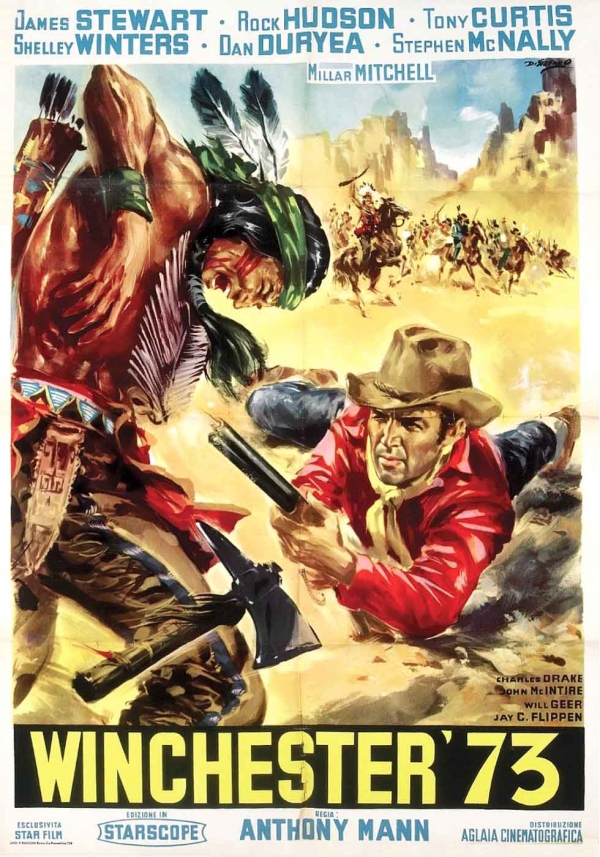 Gallieno Ferri, Bu kapak çalışmasında bir sinema afişinden yararlanmış. Film; western meraklılarının bildiği, iyi bir kovboy filmi olan Winchester ’73. Anthony Mann’in yönettiği ve başrolünde James Stewart, Rock Hudson ve Tony Curtis‘in oynadığı 1950 yapımı bir Amerikan Western ‘kara’ filmi. Film 1876’da, çeşitli ünlü Western mekanlarında geçiyor ve değerli bir tüfeğin, sahibinden çıkarak, diğer sahibine yolculuğunu konu alıyor. Bu ABD filmi için çok güzel kapaklar hazırlanmış. Aşağıya iki örnek bırakıyorum. Ama Ferri usta, Amerikan afişinden değil de, İtalya dağıtımı için basılan, Giovanni Di Stefano‘nun yaptığı afişten etkilenmiş. Farklı ülkelerde basılan, Mister No kapaklarında, ilgi çekici bir şey olmadığı için pas geçiyorum.