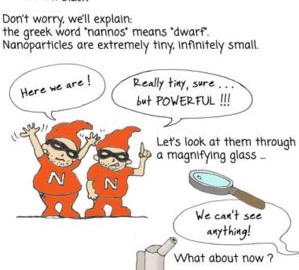 Fransız Tasarım sanatçısı Geraldin Grammon, eğitim amaçlı ‘’Nano‘’ isimli çizgi öykü ile, bu konuya ait bilgiyi yayma yolunu seçmiş. Çizimleri, nanoparçacıklar ve bunlara ilişkin riskleri içeriyor. Kitap, günlük ürünlerde söz konusu nanoteknoloji hakkında eğitici bir mini çizgi roman niteliğinde. 2017’de çevrimiçi olarak yayınlanmış, 2018’de İngilizceye, ardından 2019’da Almanca, Yunanca ve İspanyolcaya çevrilmiş.