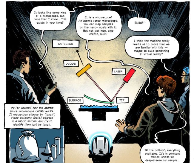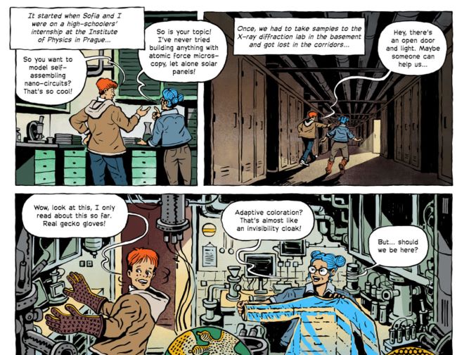 FZU Fizik Enstitüsü’nün tanıtım ekibinin üyesi olan Julie Nekola Novakova çizgiroman için şunları söylüyor; ‘’Sofia ve Alex’i zamanda geriye götürmek, nanoteknolojinin gelişimini mümkün kılan icatları tanıtmamıza olanak sağladı.