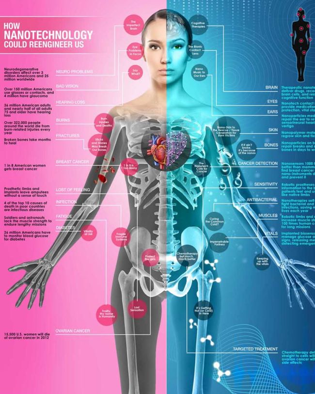 2001 yapımı ‘’Cowboy Bebop‘’ filminde, bir biyoterörist virüslere benzeyen nanomakineler kullanarak etrafına ölüm saçıyordu. Bu tür biyoteknolojik terörizm, Yukito Kishiro‘nun ‘’Gunnm Last Order‘’ adlı eserinde de ele alındı. Eserde, son derece kanlı ve karanlık siberpunk evreninde, nano bileşenler baş kahraman durumundalar ve insanların kendilerini yarı tanrı olarak hayal etmelerine olanak tanıyorlar. Kishiro eseriyle, bilimin aşırılıklarını ve bunların toplumsal sonuçlarını sorguluyor, nanoteknolojinin gelişiminin siyasi ve sosyal sonuçlarına odaklanmış. Sanatçı, nanoteknolojideki son buluşlardan yola çıkarak teknolojinin toplum ve birey üzerindeki sonuçlarını açıklıyor. Tıbbi nanoteknoloji ve beyin rekonstrüksiyonu ile karakterlere neredeyse ölümsüzlük kazandırılıyor. Bu durum, Asimov‘un “İki Yüzüncü Yıl Adamı” adlı kısa öyküsünü hatırlatıyor.