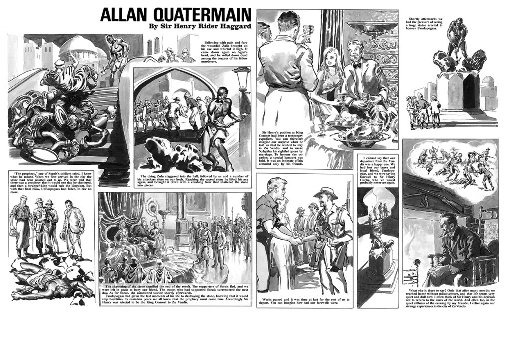 Quatermain tiplemesi 1885’deyazar Henry Rider Haggard’ın “Hazreti Süleyman’ın Hazineleri” romanında görüldü. Kahramanı, avcı, rehber ve hazine avcısıdır. 1887 yılında ise kendi başına bir roman oldu. Roman, Doğu Afrika’da Masai topraklarında geçer. Afrikalıların iç savaşlarında ve beyazlarla olan savaşlarında görürüz kahramanı. Çinko illüstrasyon oymalarını C.H.M Kerr yapmıştır.