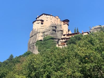 57. sayfada kahramanlarımız bir hasır sepet içinde Metereon’a çıkıyorlar. Boşa çaba, çünkü 1920’lerin başında, manastırlara erişimi kolaylaştırmak için konforlu merdivenler inşa edildi. Tuhaf durum yeni baskıda ortadan kalkıyor, ancak yamaç paraşütü ile tehlikeli kaçış kalıyor.
