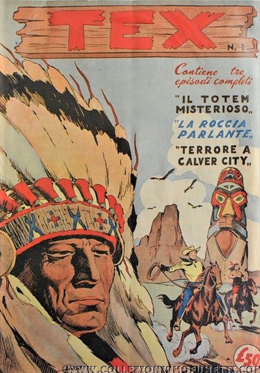 Kapaktaki Kızılderili Reis; 1946 yılından bir reklam. Yani Tex doğmadan iki yıl önceye ait. Gururlu bir Kızılderili Reisi duruşu. Santa Fe demiryollarının reklam yüzünden başkası değil. 1949’da Galep bunu ilk Tex serisinin yirmi dokuzuncu sayısında kullandı. 1956’da aynı kapak biraz oynanarak, şerit serisinde de kullanıldı. Son olarak da Klasik serinin ilk kapağı olarak kullanıldı.