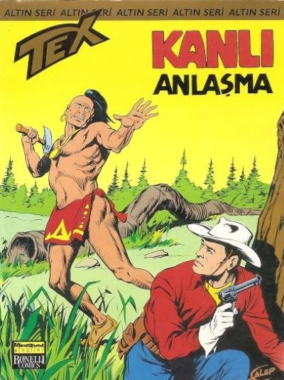 Gelelim kapaklara. İncelediğimiz öykünün, 1960 yılında yayınlanan bugün ki formatında, macera iki kitaba bölünmüş. Ve iki kitabın kapakları da bu öykü ile alakalı değil. İlk olarak Kanlı Anlaşma kitabının kapağı daha sonra yayınlanacak, 10. kitap olan Tuzak öyküsünün konusu için çizilmiş. Ama öykünün içinden bir vinyet değil. Galep usta özel olarak çizmiş. İlk önce 1950 yılında, Beyaz Şerit serisi için çizdiği kapağı geliştirerek 1. Onur serisinin 47. sayısı için yeniden çizmiş. Diğer Onur serisi kapakları gibi sağlam bir grafik. Bugün ki format için ise, Gros-Jean resimden atılmış ve ağaçlar değişmiş. Kapak aynı haliyle 2021 yılında Klasik seri için de kullanılmış. Ülkemizde, 1983 yılında Tex kapağı için ters çevrilerek kullanıldı.