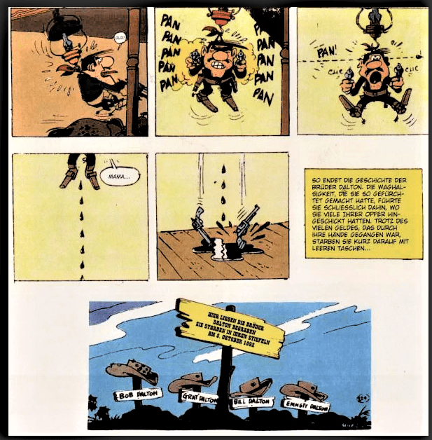 ÇizgiRoman alemine gelirsek; Red Kit ve Tex‘in bu macerasının dışında, 2016 yılında ilk cildi olan İlk Ölüm, 2017 yılında ikinci cildi olan Son Gün isimli Daltonlar ÇizgiRoman serisi çıktı. Senaryosunu Olivier Visonneau, çizim ve renklendirmelerini Jesus Alonso Iglesias yapmış. Ayrıca 2022 yılında bu iki öykü tek kitap halinde çıktı.