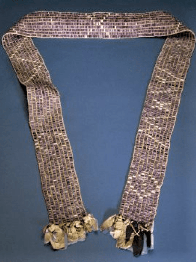 Nedir bu Kutsal Wampum? Dakota’lar; Büyük Siux Kızılderili üst grubuna ait bir Kızılderili kabilesidir. Yörelere ait ufak tefek kültürel değişiklikler olmasına rağmen, genel olarak aynı geleneklere sahiptirler. En büyük bağlayıcı unsur ise kullandıkları ortak dildir. Siouan-Catawban dili, Kuzey Amerika’da kullanılan Kızılderili dil ailesidir. Wampum, Siux ve Dakota kabilelerinin geleneksel kabuk boncuğundan kemer tarzında yapılmıştır. Kuzey Atlantik beyaz deniz salyangozu kabuğundan veya sert kabuklu istiridyeden yapılmış beyaz ve mor boncuklardan oluşur.