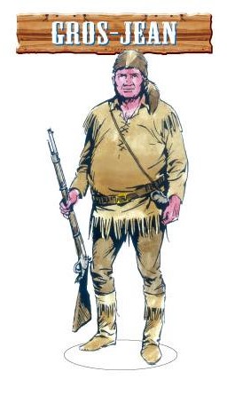 Gros-Jean de Tex ekibinin en önemli arkadaşlarından biri olacak. Tex ile aynı yaşlarda. Favorileri, Davy Crockett şapkası (Porsuk şapkası), makosen ayakkabılar, saçaklı giysiler, namludan doldurmalı tüfek. Mesleği tuzakçı olan bu iri yapılı Melez (Métis); sadık bir dosttur. Vahşi Kanada’nın her köşesini avucunun içi gibi bilen, yenilmez, kolayca öfkelenen, güçlü yumrukları olan bir avcı. İlk çatışmanın ardından Tex, temiz yürekli bir adam olduğunu anlar ve ikisi arasında hemen güçlü bir dostluk kurulur. Azimli ve cömerttir. Bir dostuna iyilik yapmak için aşamayacağı engel yoktur.