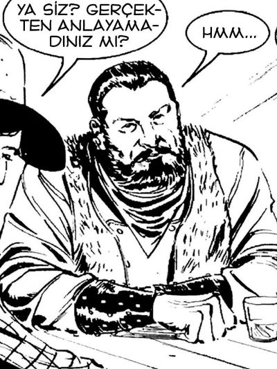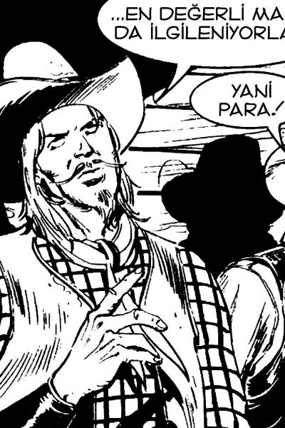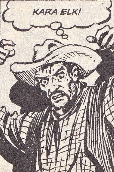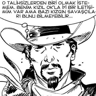 Kara Geyik. (Eski öyküde Kara Elk) Bu maceranın en akıllı düşmanı, baş karakterden de öte, onun tasarlandığı dönemi yansıtıyor. 1948’in kolektif hayal gücünde, Kızılderili neredeyse bizim yüz hatlarımıza sahipti. Ancak tanınabilmesi için tüylü başlık gerekiyordu. Bugün, görünüşü gerçek bir Kızılderili ve kafasındaki tüyler sadece eski bir hatıra.