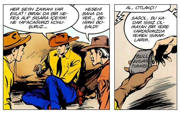 Maceranın ilk cildi olan Teks’in Oğlu kitabının 144. sayfasında Carson, Tex’in tütün kesesini ister. Kesenin üstünde bir marka yazılıdır. Bull Dubuan Tobacco. Galep usta kafadan atmamış bu ismi. Bull Durham Smoking Tobacco, 1850’lerde ortaya çıkan ve 1988’e kadar satışı yapılan, Kuzey Carolina, Durham’da üretilen bir tütün markasıydı. Yıllar geçtikçe, marka sık sık el değiştirdi ancak popüler tütün markalarından biri olmaya devam etti. Bull Durham, geçmişte reklam kampanyalarıyla da ilgi çekti. Marka, Durham’ı dünya çapında ünlü yapan, şehri geliştiren ve Durham’ı ABD’nin tütün başkenti yapan başarılı reklam kampanyalarına imza attı.