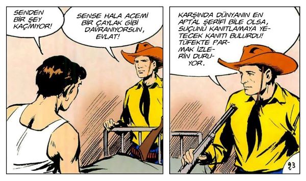 Tex, Kit Willer‘e tüfeğin üstündeki parmak izlerini silmesini nasihat eder. Zamanlama olarak az biraz kısa kalmış bu nasihat. Çünkü, kronolojik olarak bakarsak bu öykü 1878/80 yıllarında geçiyor. Oysa, yöntem 19. yüzyılın sonlarında başladı. 1890’larda parmak izi sınıflandırması ve benzersizliği hakkında ayrıntılı bir çalışma yayınlayan Sir Francis Galton tarafından temeli atıldı. İlk pratik uygulaması, Henry Sınıflandırma Sistemini geliştiren Sir Edward Henry tarafından gerçekleştirildi. Bu sistem, 1901’de Londra Polisi tarafından kullanıldı. Bilimsel çalışmalar 1890’larda başlamış olsa da, kimlik belirlemek uygulamalar 20. yüzyılın başlarında, 1901 civarında başladı.