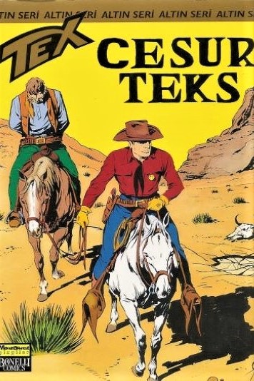 Bu maceranın iki kapağından ikincisi olan Cesur Teks kitabının kapağının hikayesi biraz karışık. Kapağın öncülü ya da başlangıcı, José Louis Salinas‘ın 1954’de çizdiği bir Cisco Kid ÇizgiRomanından, küçük bir figürden esinlenme. Aynı yıl 4. Onur serisinin 9. sayısının kapağında, bu küçük figürün yanına bir kasaba içinde, Tex’i bir tutukluyla beraber görürüz. 1961 yılında aylık serinin 13. sayısı olan, şimdi incelediğimiz Cesur Teks kitabının kapağında da aynı resmi görüyoruz. Ama arkadaki kasaba uçmuş, yerine bozkır manzarası gelmiş. 2021 yılında ise Klasik serinin 106. sayısına kapak olmuş. Bu sefer de arkadan gelen tutuklu uçmuş. Tam bir kapak macerası! Asıl garip olan ise, Onur 9. sayının da, Klasik 106. sayının kapağında da Galep imzası yok.