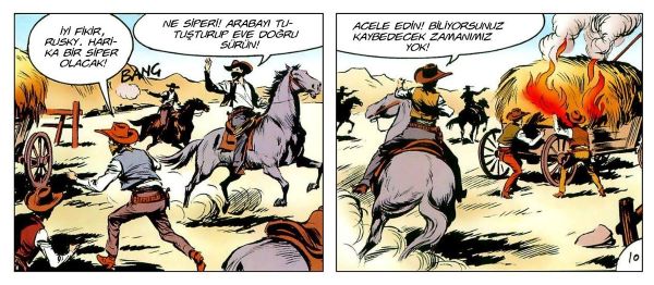 ⦁ Tex, bir sel baskınının tehdidi altında olduğunu anlayınca, boğulma riskini göze alarak atı Dinamit’ı serbest bırakır.