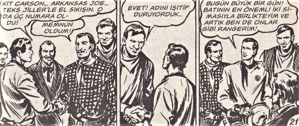 Meraklısına: Bu öyküde Kit Carson‘u ve Arkansas Joe‘yu ilk defa, kısa bir tanışma ile görürüz. Carson, Tex’in kankası olacaktır. Ama G.L.Bonelli, Arkansas Joe’yu unutacak. Ne zaman ki Genç Tex Willer dizisi ile Boselli usta, tekrar hayata döndürecek. Bu öykü de, daha sonra farklı serilerde pek kullanılmamıştır.