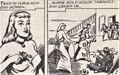 Özellik: İki güzel kadın, ama farklı iki kadın. İkisi de Tex’e hayrandır. Gazete’de babasına yardım eden ‘erdemli’ bayan Joan ve kasabanın bar’ını yöneten ‘yosma’ Marie Gold. Fakat Tex ikisine de mesafeli ama naziktir.