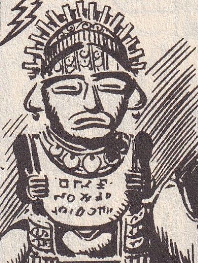 Öyküde baş rolde bir Aztek heykelciği vardır. Xipe. Aztek mitolojisinde, Xipe Totec veya Xipetotec bir yaşam-ölüm-yeniden doğuş tanrısıydı; tarım, bitki örtüsü, bahar, kuyumculuk, gümüşçülük, kurtuluş, ölümcül savaşlar, mevsimler ve yeryüzünün tanrısıydı. Xipe Totec’in kadın eşdeğeri tanrıça Xilonen-Chicomecoatl’dı. Aztekler tarafından Xipe Totec’in savaşı icat eden tanrı olduğuna inanılıyordu. Tenochtitlan Büyük Tapınağı içinde Yopico adlı bir tapınağı vardı. Xipe Totec’in çiçek hastalığı, siğiller ve göz hastalığı gibi hastalıklarla güçlü bir ilişkisi vardır ve eğer biri bu hastalıklardan muzdaripse ona adaklar sunulurdu. Bu tanrıyı onurlandırmak için çeşitli insan kurban etme yöntemleri kullanıldı. Bazen başka kurban biçimleri de kullanılıyordu; kurban ateş çukuruna atılıp yakılıyordu, bazen de boğazları kesiliyordu.