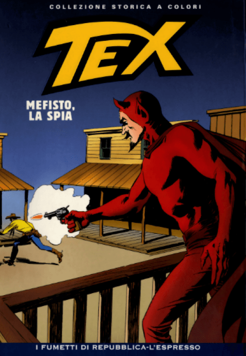 Repubblica yayınevinin 2007 yılında yayınladığı, Tarihsel Renk Koleksiyonunun 2. sayısı, Mefisto, La Spia, 1948 yılında yayınlanan, 1. Şerit serisinin 35. sayının içinden ya da kapağından bir vinyete çok benzemiş. Benzemiş, çünkü bu sefer kapağı çizen Claudio Villa.