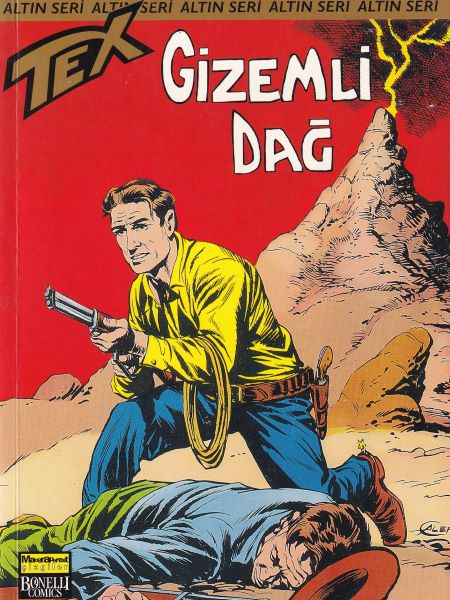 Kapağımıza gelirsek. Bu kapağın öncülü olarak, 1959 yılında basılan 7. Onur serisinin 6. sayısının kapağını görüyoruz. Maceraların birbiriyle hiç bir bağı yok. Görseli, daha sonra 1961 yılında, şimdi okuduğumuz aylık serinin, bu sayısının kapağı olarak görüyoruz. Galep’in çizdiği kapak, 1961 yılında Bignotti tarafından yeniden düzenlenir. Bignotti, kapağa maceranın ismini yazdı, görsele ufak müdahaleler yaptı ve arka plana yıldırımlı bir dağ ekledi. Tabii bir de kıpkırmızı zemin.