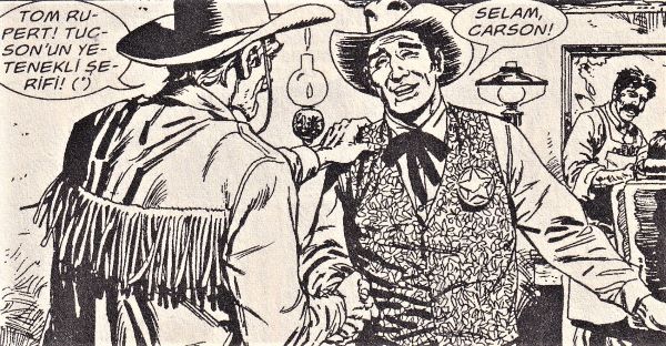 Daha önceki birçok Tex öyküsünden tanıdığımız Şerif Tom Rupert (Amansız, Tucson, Büyük Yarış, Cehennem Avı, Rurales) tekrar karşımızda. Kahramanlarımızın sıkı dostu olan, acayip desenli yeleği ile hatırladığımız Şerif, sadece öykünün başında görülüyor. Tom Rupert ile ilgili daha fazla bilgi, Tex’in Amansız isimli öyküsünün, sitemizdeki incelemesinde bulunuyor. Yazının en altına Link‘ini bırakacağız.