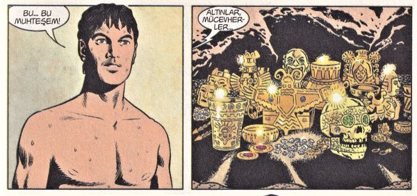 Evet, çok özellikli bir öykü, çünkü bu öykü bir sürü diplerde kalmış öyküyü birbirine bağlıyor. Bu öykü bir taraftan geriye dönüş öyküsü. Ama bir taraftan da iç içe geçmiş 4 ayrı öykü. Karışıklığa sebep olmadan anlatmaya çalışalım. Anlatımımızı önce dörde ayıralım. Tesah ve Pavni Altını. Tex’in eski arkadaşları, özellikle Lanetli Dick. Sonrada Pavni’ler ve Büyük otlakları ele alalım.