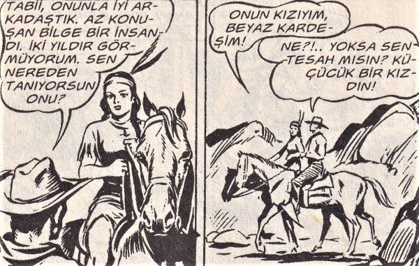 1- 1948’de yazılan ilk öykü olan Gizemli Totem öyküsünde, Tex, Tesah ile karşılaşır. Tesah bu macerada 15-16 yaşındadır ve yıllar önce Tesah ile tanışmasına rağmen onu ilk bakışta tanıyamaz. Tesah kendisini hatırlatmak zorunda kalır. İşte bu macera, 1948’deki öyküden yıllar öncesine yani 16 yıl öncesine götürüyor bizi.
