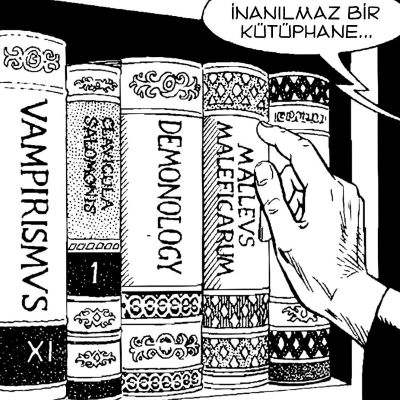 Üçüncü kitap olan Altar Çölü‘nde Maestro Narbas ve Padma, El Morisco’nun kütüphanesini incelerken hayranlıklarını belli etmeden duramazlar. Ama biz de El Morisco‘nun nasıl bir bilgin olduğunu anlarız bu arada. Farklı sayfalarda, 2 yerde görürüz kitapların bir kısmını. İlkinde üç kitap dikkatimizi çeker. Vampirisnus. Demonology ve Malleus Maleficarum.