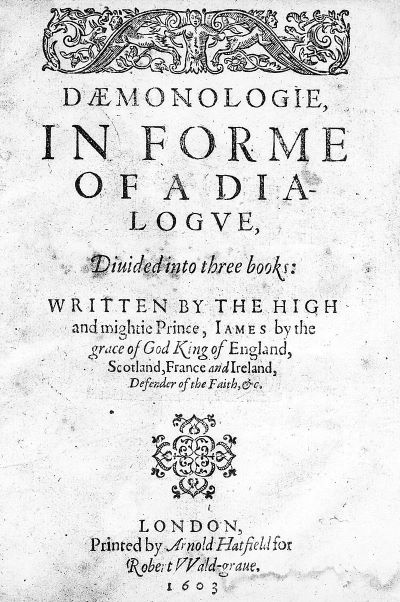 Daemonologie ilk olarak 1597’de İskoçya ve İngiltere Kralı VI. James tarafından çağdaş büyücülük ve antik kara büyüde kullanılan çeşitli kehanet yöntemleri arasındaki tarihi ilişkiler üzerine felsefi bir tez olarak yayınlandı. James İngiltere tahtına oturduğunda 1603’te tekrar basıldı.