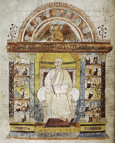İkinci resimde de bazı kitaplar görürüz. St Augustine İncilleri; 6. yüzyıldan kalma bir İncil Kitabıdır ve 1575’ten beri Cambridge Corpus Christi College’daki Parker Kütüphanesi’nde bulunmaktadır. İtalya’da hazırlanışından kısa bir süre sonra İngiltere’de gelmiştir. 16. yüzyılda muhtemelen yaklaşık bin yıldır Canterbury’de kilisede bulunuyordu. Bu el yazması, günümüze ulaşan en eski resimli Latince, Yunanca veya Süryanice İncil Kitabı’dır. Avrupa’nın da en eski kitaplarından biridir. İki tam sayfa minyatür, sanat tarihinde büyük öneme sahiptir.