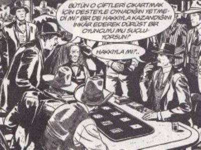 Özellik: Vahşi Batı efsanelerinin bir kısmı ufak tefek değişikliklerle de olsa günümüze kadar ulaşmıştır. En azından şahıslar doğrudur, öyküler abartılmış ise de. Bunda tabii ki asıl etken, çok da eskilere gitmeyen Amerikan tarihidir. Ama unutmayalım ki bütün uluslar efsaneleri sever ve onları abartır. Bu kahramanlardan ilk aklımıza gelenler; Billy the Kid, Vahşi Bill Hickok, Daltonlar’dır. 232. sayfada, Doc bize ipucunu veriyor. ”Batıda efsaneyi, gerçekten ayırmak kolay değildir.. Bahse girerim, her zaman, Johnny Ringo’yu ve diğerlerini benim öldürdüğümü söyleyen birileri olacaktır…’ Zaten Amerikan sinema sektörü, kahramanlardan bolca faydalanmış ve köpürtmüştür. Örneğin Earp kardeşler ve Doc Holliday öyküsü defalarca beyaz perdeye aktarıldı. İlk kullanan da John Ford’dur. ‘Oh My Darling Clementine’ filmi.