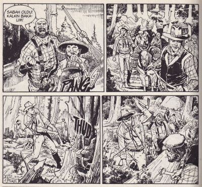 Özellik: Ormanda Dehşet, hem Senaryoda Amerikalı Chuck Dixon‘ın hem de çizimlerde yetenekli Michele Rubini‘nin Tex’teki kısa ama etkileyici bir çalışması. Rubini’nin 2. Tex çalışması. Dixon’un ise ilk tex çalışması. Sonradan 2 tex daha yazdı. Marvel ve DC Comics ile, özellikle de Punisher ve Batman’deki ‘tarihi’ işbirlikleriyle tanınan Amerikalı yazar Chuck Dixon, 71 Punisher, 42 Conan, 55 Airboy, 35 King Kull, 32 Skywolf (yeter artık sayamayacağım. 500-600 tane daha var. Adam senaryo canavarı) yazdı. Başrolünde Kit Willer’ın yer aldığı kısa öykü, Dixon’ın anlatı ustalığını yansıtıyor. Karakterleri mükemmel bir şekilde planlamış ve Rubini de yerine oturtmuş.