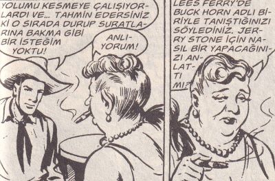 Siz Erio Nicolo’nun çizdiği bu harika macerayı okurken yazı dizimize de devam edelim. Konumuz Teks ve kadınlar arasındaki ilişki ve bunların ilk maceralara yansımasıydı. Maceraperest’in beşinci cildine denk gelen ve orijinal sıralamada da aynı numarada yer alan öyküde kahramanımız Milly Copland adında bir kadınla tanışır. Kocası madende mühendistir ve bir suikast sonucu öldürülmüştür. Dul kalan güzel hatunu da madendekilerden biri rahatsız etmektedir. Teks, Milly’yi saldıran adamdan kurtardıktan sonra kasabaya gider ve hem maden hem de kasaba hakkında kötü emelleri olan ve çevresine bir yığın adam toplamış durumdaki Benton adlı hayduda karşı savaşmak için şerifliğini ilan eder. Öykünün ilerleyen bölümlerinde bu kez Teks, Linyard adlı bir çiftlik sahibiyle tanışır. Çiftlik sahibinin de Dora adlı bir kızı vardır ve tesadüf bu ya o da kâhya tarafından rahatsız ediliyordur. Kahramanımız onu da kurtarmayı kendine vazife edinir. Çünkü Linyard’ın ortağı Benton’dur ve kıza eğer kendisiyle evlenmezse babasını öldüreceğini söylemiştir. Tam bir aşk dörtgeni anlayacağınız. Devam edelim.