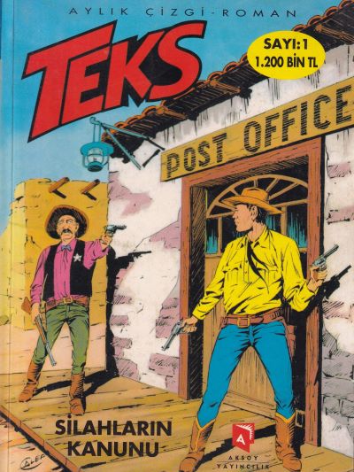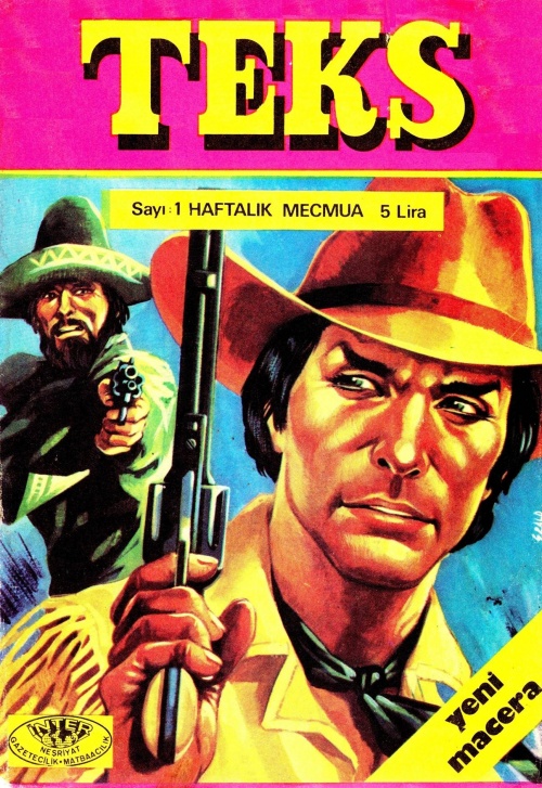 Çetin Karakoç’tan sonra Bülent Hazer’in Inter Neşriyatı da bildiğim kadarıyla 8 fasikül. Teks yayınladı 1977’den sonra. Bunlarda Galep çizimi bir macera ve Fusco’nun çizdiği Kanadalı Asiler vardı ve ikinci macera yarım kalmıştı. Soluk bir baskı, özensiz kitsch kapaklarıyla bu dönem oldukça kısa sürdü. Zaten 1981’de Ceylan Yayınları tekrar Teks’i yayınlamaya başladıktan sonra 1987’ye kadar 186’lık, 69’luk ve 6’lık olmak üzere üç seri çıkardı. Gerçi altılık serinin sonuncusunu gören pek az, rivayet diyorlar. Koleksiyoncular hala aralarında tartışır durur. Ceylan Yayınları’nın sahibi Erdoğan Egeli’nin ölümü ve bir süre sonra da Osman Egeli’nin çizgi roman yayınına son vermesi Teks’i öksüz bıraktı.
