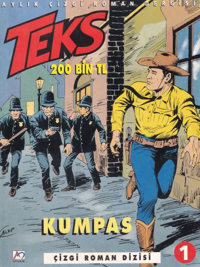 90’ların başında Alfa’nın otuz iki sayıdan sonra bırakması, arkasından gelen Galaksi Yayıncılığın da on sayıdan sonra pes etmesinin ardından uzun bir süre yine Teks’siz kaldık. Rahmetli Ali Recan’ın Galaksi’nin ve Alfa’nın Tekslerini birleştirip başı sonu belirsiz ciltleriyle bir müddet idare ettik. Hatta rahmetlinin marifeti miydi bilemiyorum ama arada bu ciltlerde Ceylan Yayınları’nın eski maceralarına da rastlardik ve bu bizi sevindirirdi. Çizgili Düşler’in klasik serisinde ilerde okuyacağınız Nicolo çizimi Montoya’nın Kızı (İki Rakip) macerası da bunların arasındaydı. Kit Willer zengin bir Meksika asilzadesinin kızına abayı yakmıştı ve başını derde sokmuştu. Neyse konudan uzaklaşmayalım şimdi… Milliyet Çocuk Dergisi’nin de kısa bir süre bu işe el atması haricinde Teks’siz kalmıştık.