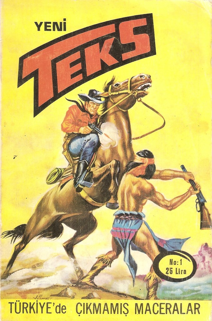 Türkiye’de Teks ilk olarak 1956 yılında Güneş haftalık çocuk dergisinde çıktı. Hiç lafı dolandırmadan söyleyeyim, bende yalan yok, bu bilgi benim için de çok yeni. Ben Teks’in Türkiye’de ilk kez Ceylan Yayınları’nda Kinowa’da dolgu malzemesi olarak 1961’de yayınlandığını sanıyordum. Halbuki öyle değilmiş ve en erken tarih 1956’ymış. Bu yeni bilgiye ise çizgi roman forumlarının tanıdık yüzü Caretta nickli Atilla arkadaşımızın bir yazısında rastladım geçenlerde. Kendisine müteşşekkirim.